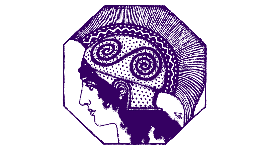 Franz von Stuck entwarf für den neu gegründeten Verein das Emblem, das bis heute von der Secession verwendet wird. Es zeigt den Kopf der Pallas Athene, der Schutzgöttin der Kunst, in einem Oktogon.